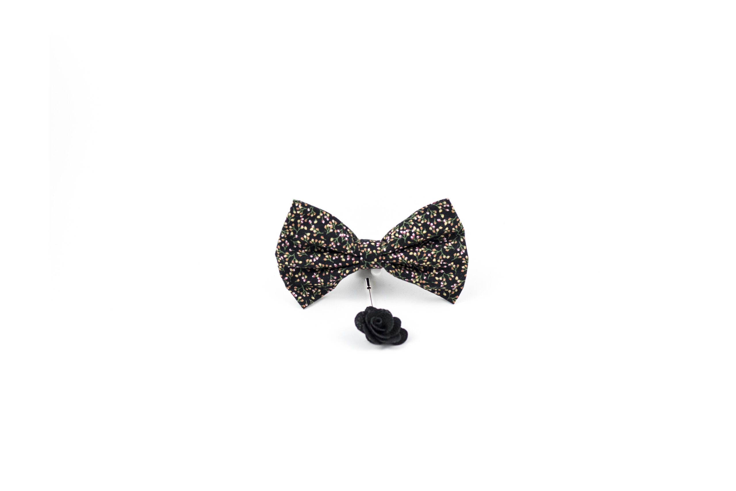 An understated floral patterned bow tie with a subtle black lapel pin, The Boyfriend Material is the perfect way to show your next date that you mean business.